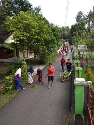 Piring I Murtigading_Karang Taruna Piring I melaksanakan gotong royong bersih lingkungan (4/2). Karang Taruna dengan kompak membersihkan jalan lingkungan, memotong rumput dan pepohonan yang mengganggu di sepanjang jalan Dusun Piring I. (N-9)