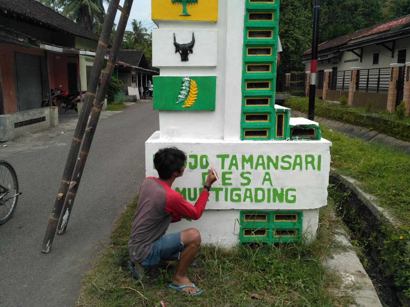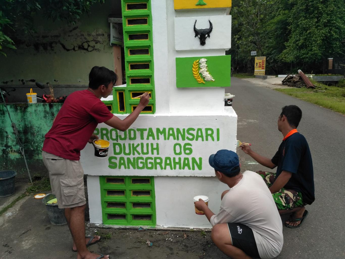 Murtigading (13/02). KKN STTNAS melakukan pengecattan Tugu yang berada di Pedukuhan VI Sanggrahan. Kegiatan ini merupakan program dari mahasiswa yang sedang KKN di Pedukuhan VI Sanggrahan. Kegiatan ini bekerja sama dengan karang taruna Pedukuhan Sanggrahan. Para Mahasiswa KKN berharap dengan pengecattan ini,tugu yang merupakan pintu masuk untuk Pedukuhan Sanggrahan menjadi lebih indah dan rapi. (pramz)