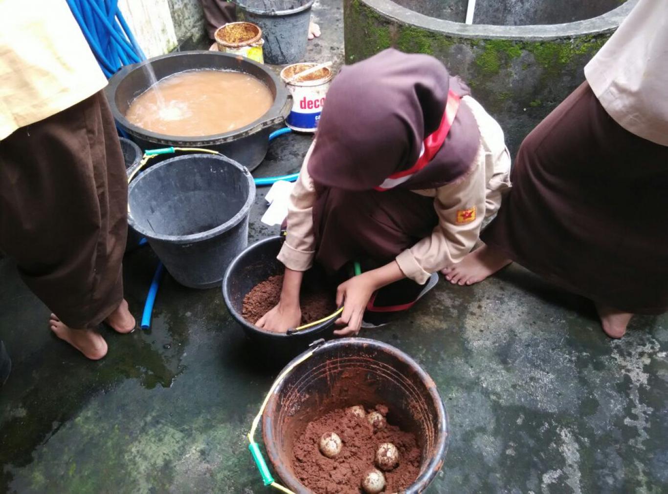 Pramuka MTs Al-Furqon Sanden Ajarkan Cara Membuat Telor Asin