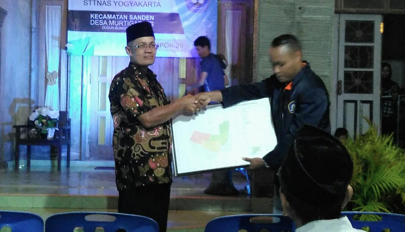 Bongoskenti- Suhardi Dukuh Bongoskenti (24/2) menerima Peta Digital Pedukuhan dan Tempat- tempat Penting Pedukuhan Bongoskenti dari KKN STTNAS X Bongoskenti. Dalam sambutannya Suhardi mengatakan, "Terima kasih yang sebanyak-banyaknya kepada Saudara Saudari KKN yang telah memberikan hasil Program kerja: Peta Digital, Label Sampah, Papan Informasi, semoga bermanfaat". (Ars)