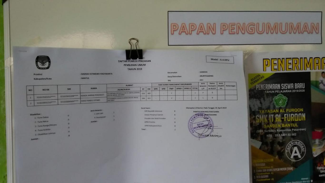 Komentar atas Pengumuman Daftar Pemilih Tambahan