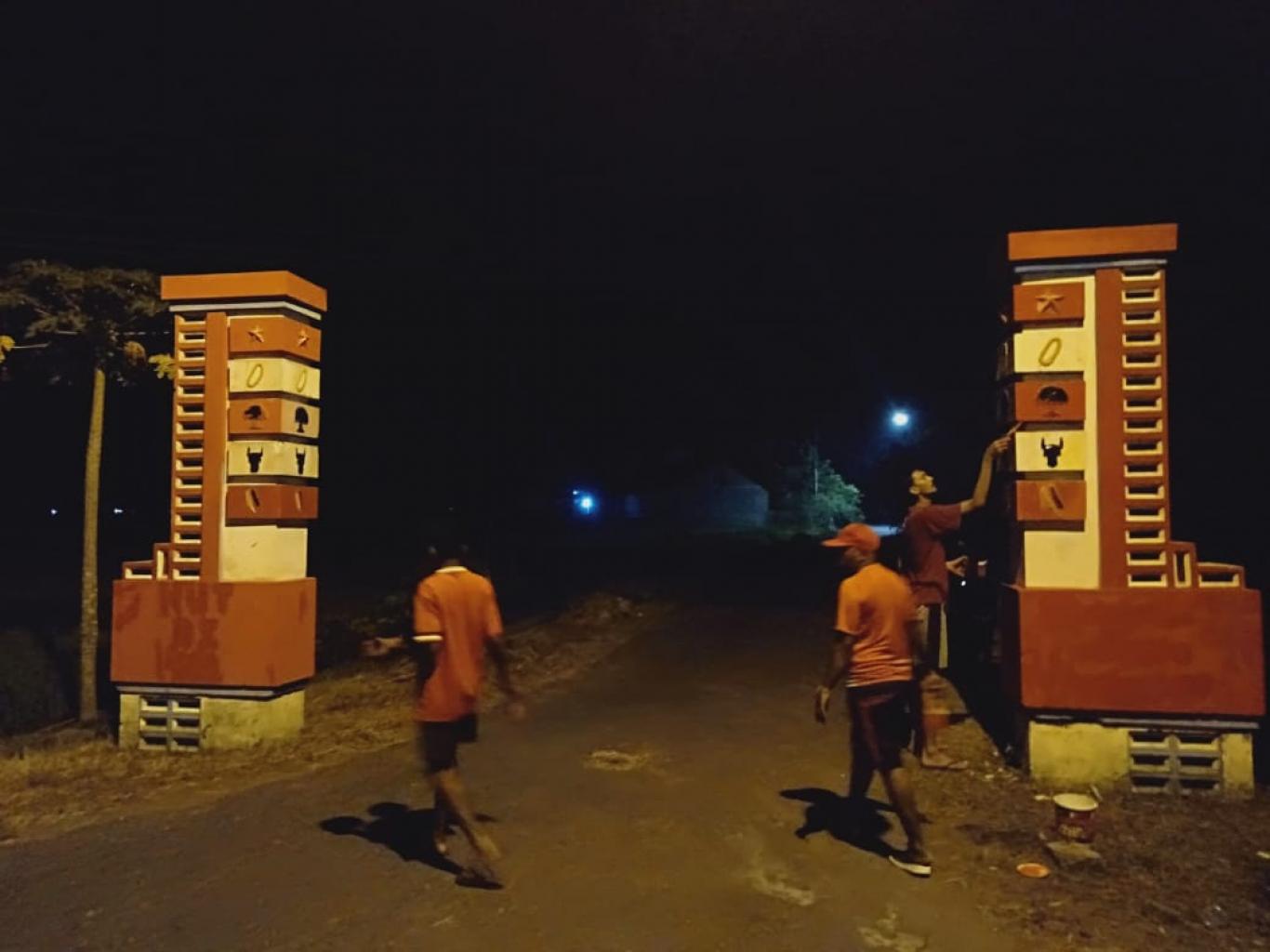 Murtigading - KKN Kelompok Bongoskenti (18/01/2020) mengadakan Pengecatan Gapura Masuk Pedukuhan Bongoskenti. Tak mengenal lelah, walau pengerjaan malam hari. Bagaikankan kerja Jin, esok harinya Gapura tampak cantik dengan pemandangan alam yang ada. #rais