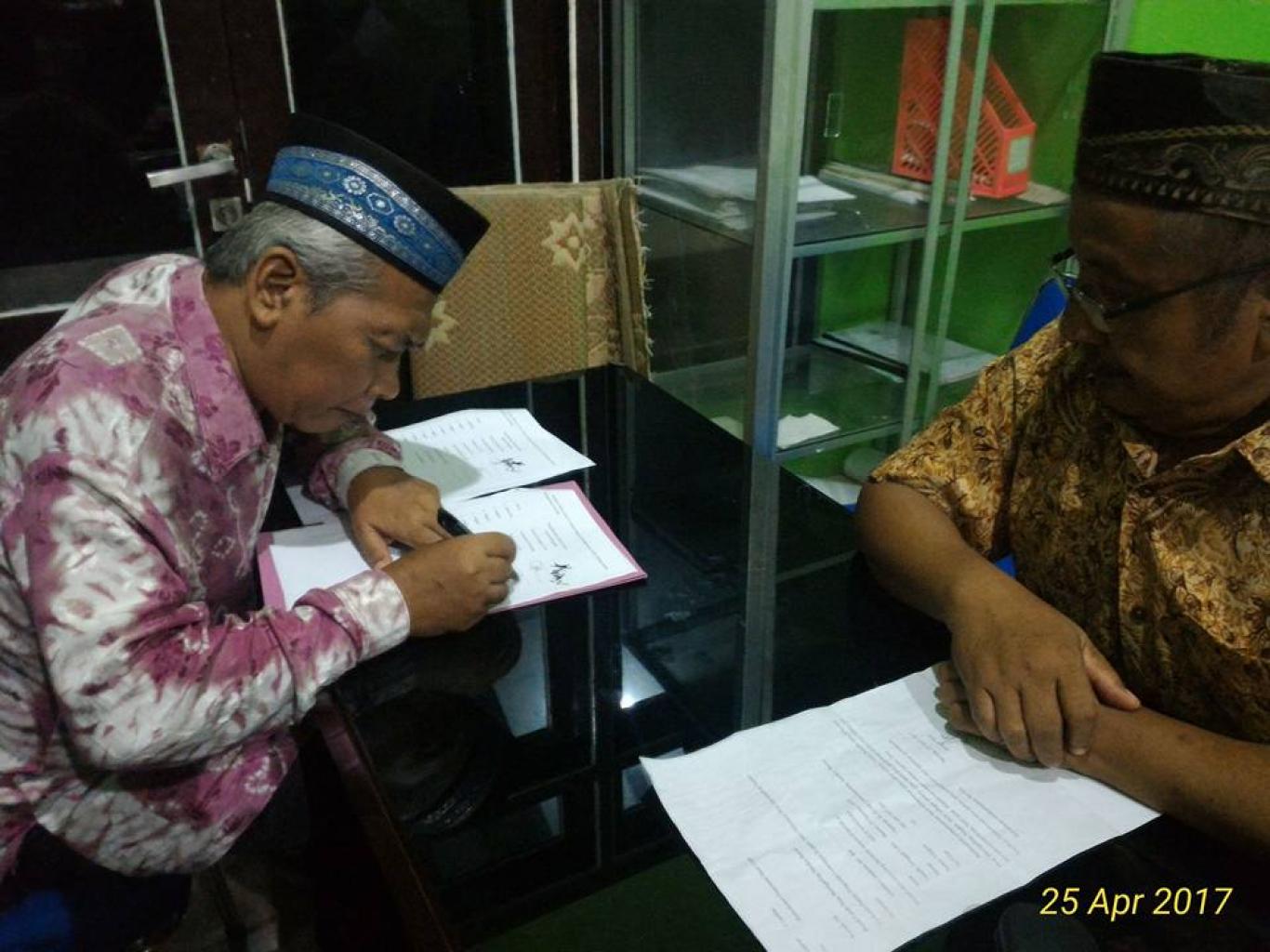 Murtigading _Penandatanganan dan Penyerahan Berita Acara Hasil Ujian Seleksi Pengisian Lowongan Kasi Pelayanan Desa Murtigading dari Bpk.TYASNA TAMTAMA, S. Pd. selaku Ketua Panitia Kepada Bpk. Drs. SUTRISNO Lurah Desa Murtigading (25/4). (Nrh)