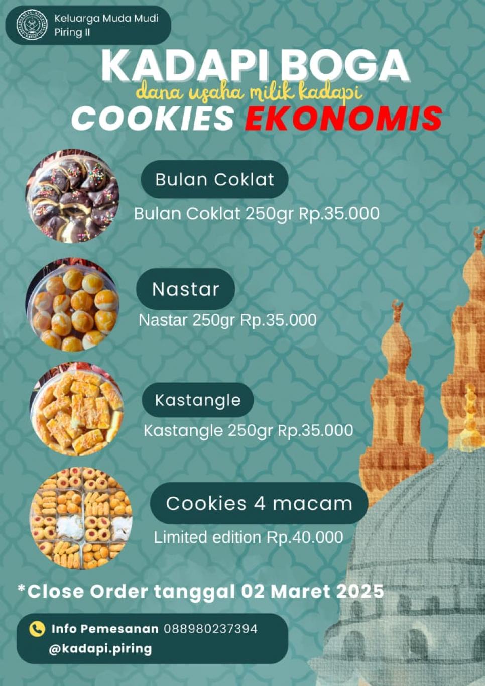 Murtigading (27/02/25). Kadapi Boga, yang merupakan karya dari muda-mudi Pedukuhan Piring 2 open order kue kering. Kue kering yang tersedia untuk diorder antara lain: