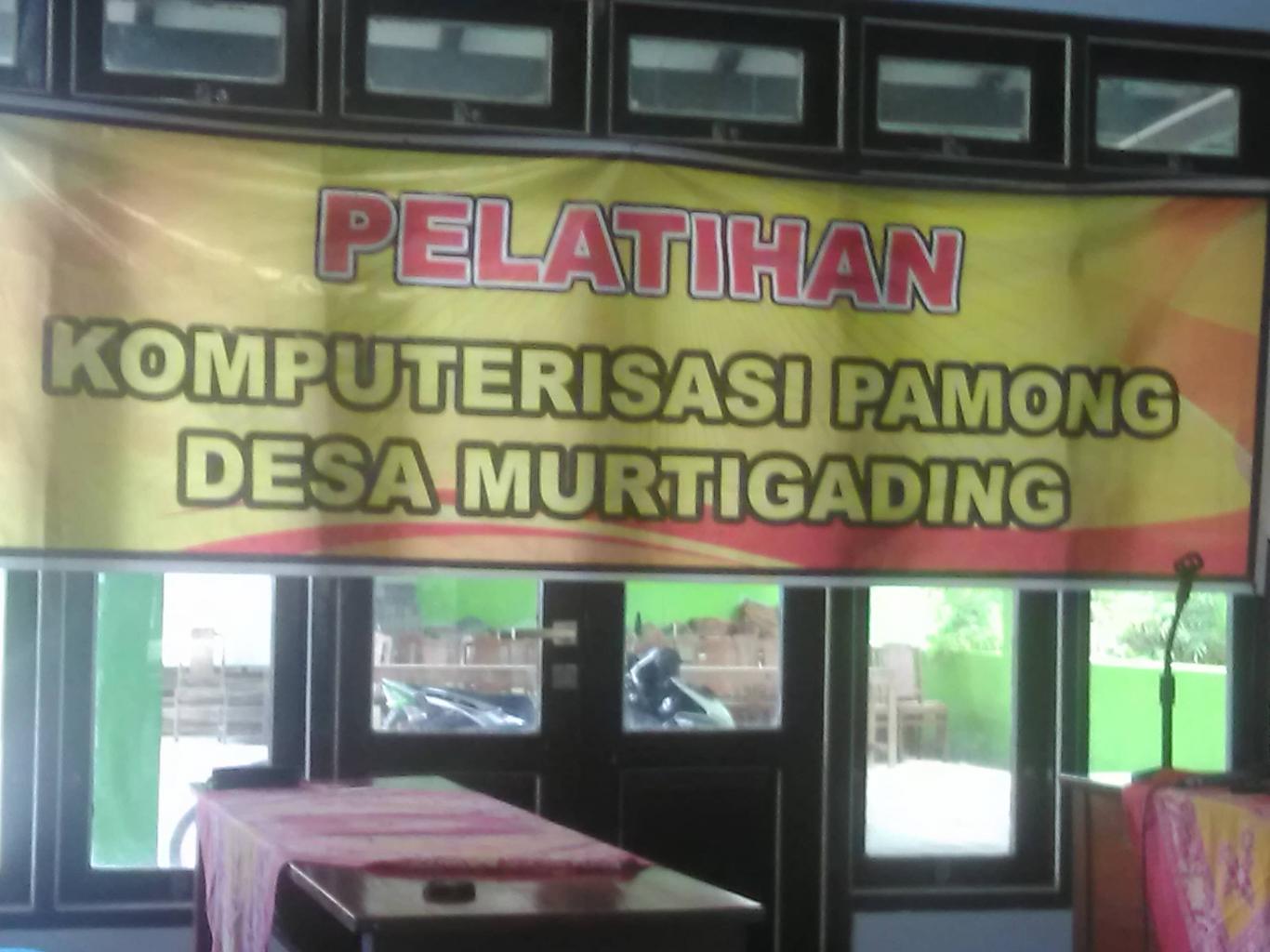 Murtigading_Pemerintah Desa Murtigading mengadakan latihan komputerisasi bagi Pamong Desa Murtigading (4/10). Pelatihan ini di buka oleh Camat Sanden (Slamet Santosa, S.IP). Sebelum dibuka camat Sanden memberikan materi : Bahwa pamong desa harus bisa menggunakan leptop untuk menunjang tugas pemerintah desa. Pengelola data bisa diakses sampai ke dusun baik untuk membuat peta dusun, data kemiskinan ,data penduduk ,data masjid,data yatim piatu dll. Kalo didusun ada relawan bisa membantu untuk memadukan data - data dusun sehingga didusun mempunyai data yang valid. ( Dyt )