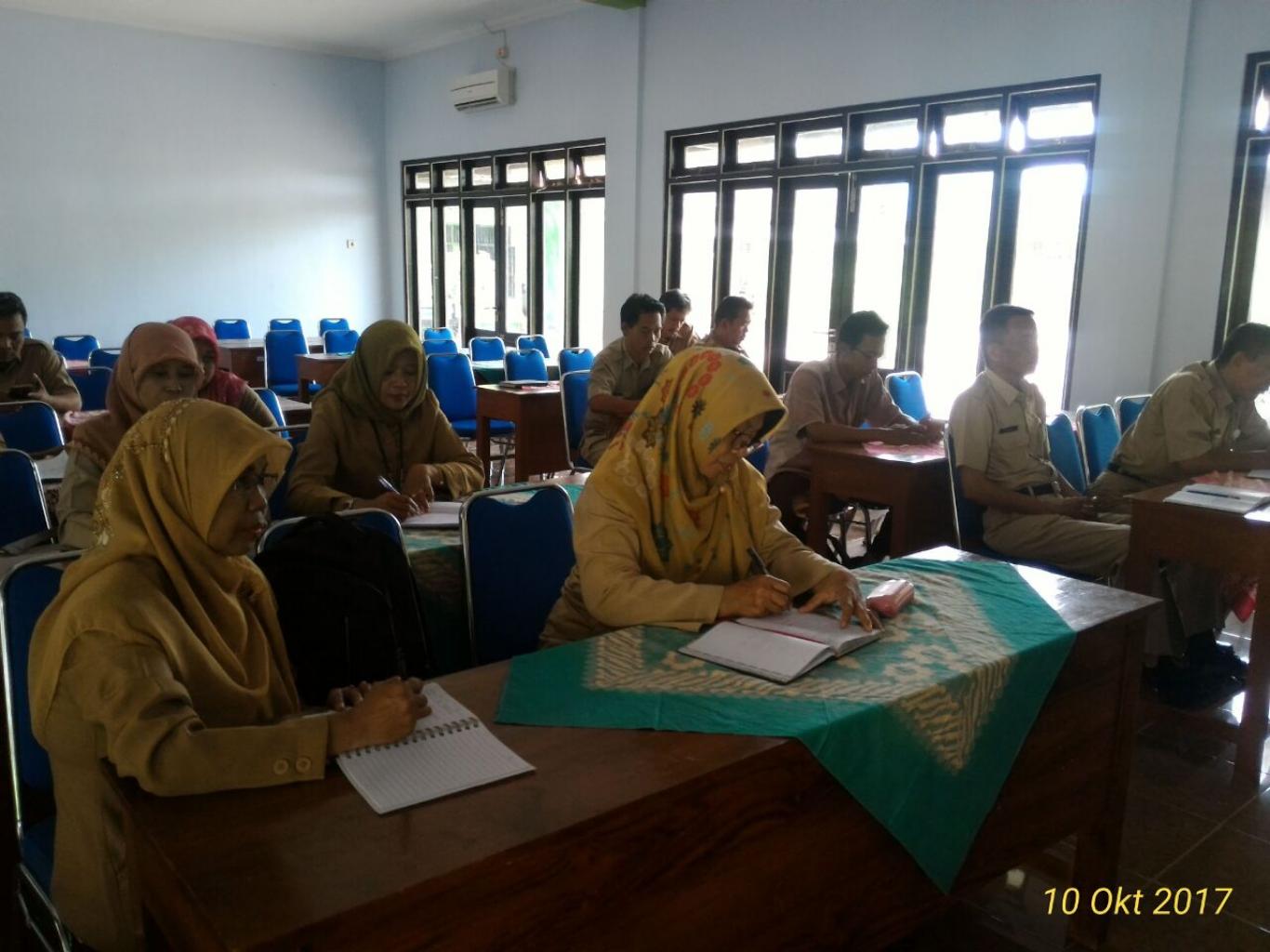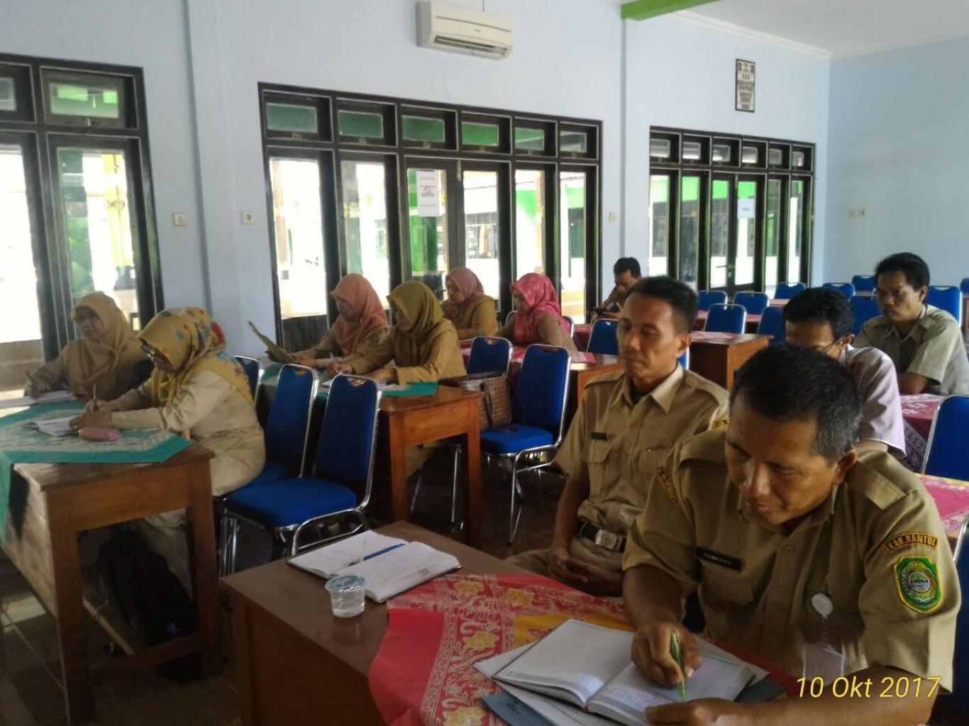Murtigading_ Evaluasi Pelaksanaan Penggunaan anggaran Pendapatan dan Belanja Desa Tahun 2017 dari Tim Monitoring Kecamatan Sanden (10/10). Acara ini dipimpin langsung oleh Camat Sanden (Slamet Santosa, S.IP). (Nrh)
